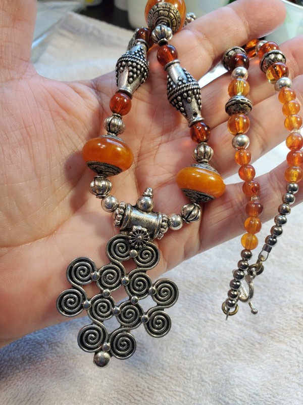 Tromso, Amber in Tibetan Silver, One of a Kind, 20" long