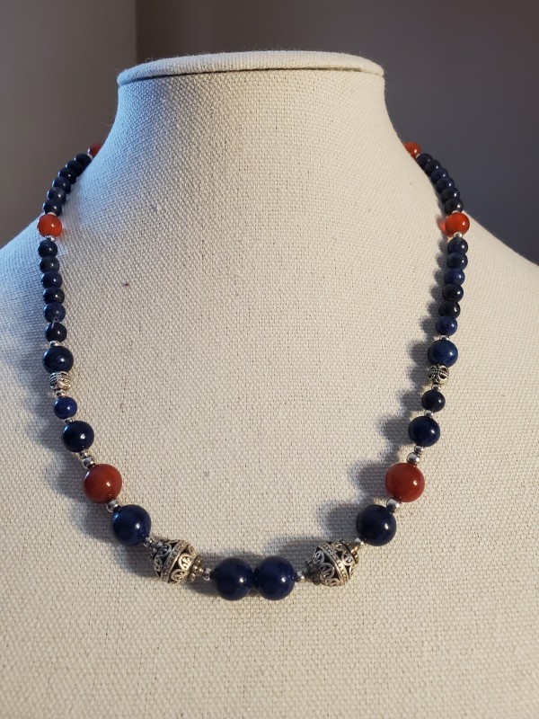 Tunesia Necklace, Lapis, Carnelian in tibetan Silver , 20" long