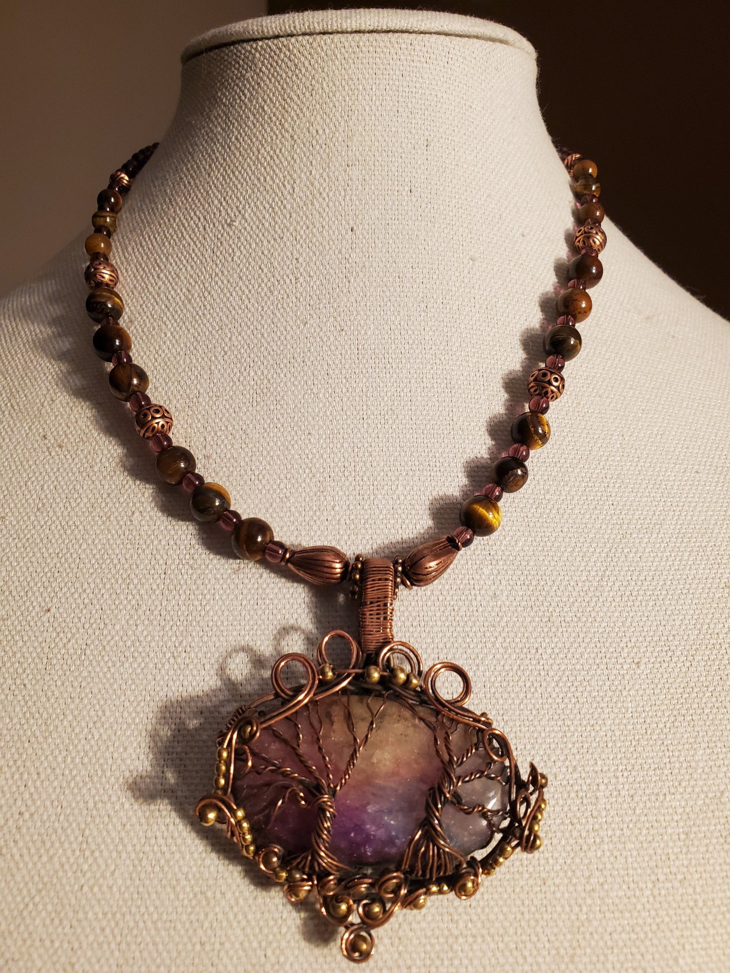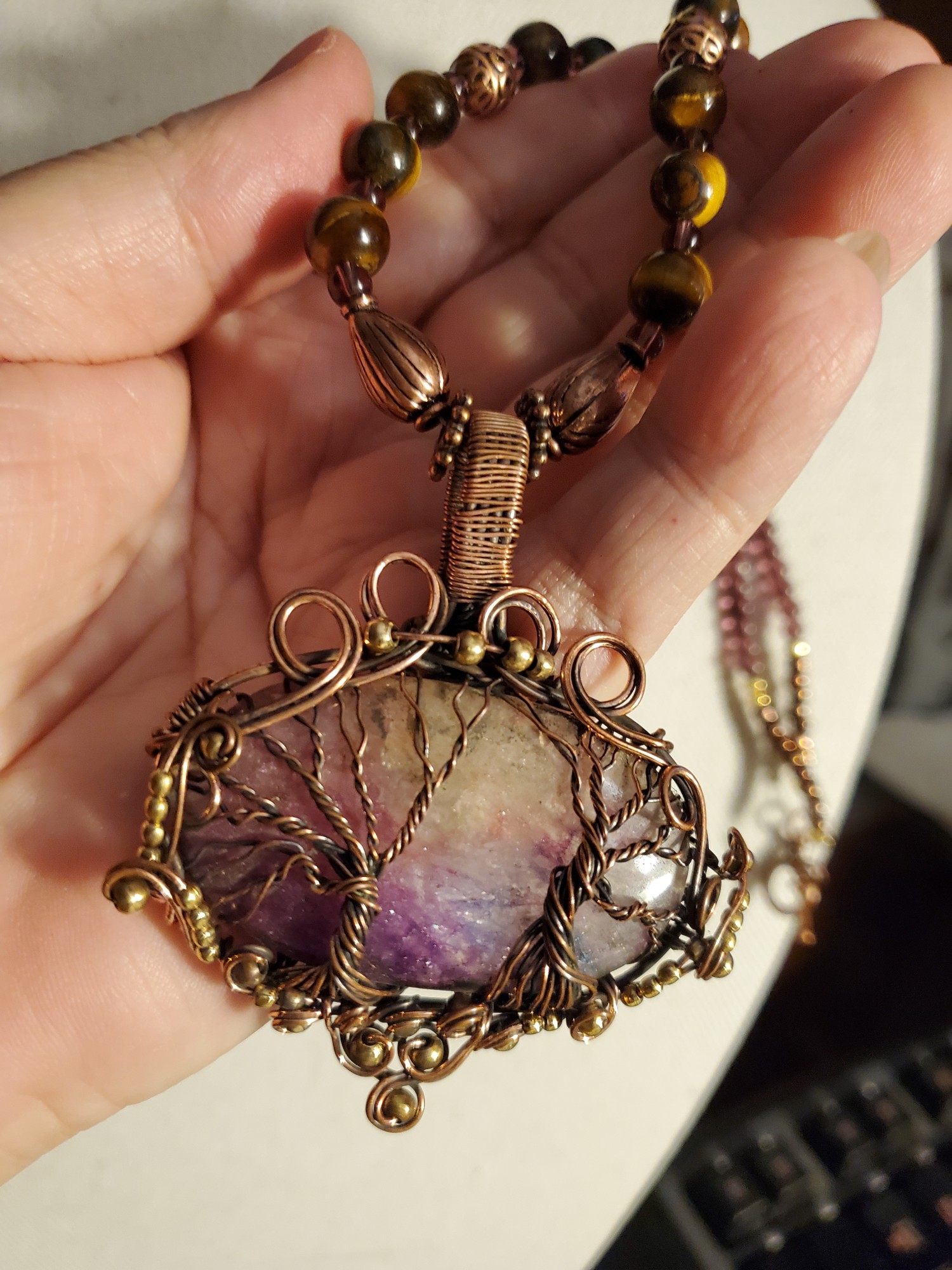 Solar Quartz in Tiger Eye, Amethyst and Copper