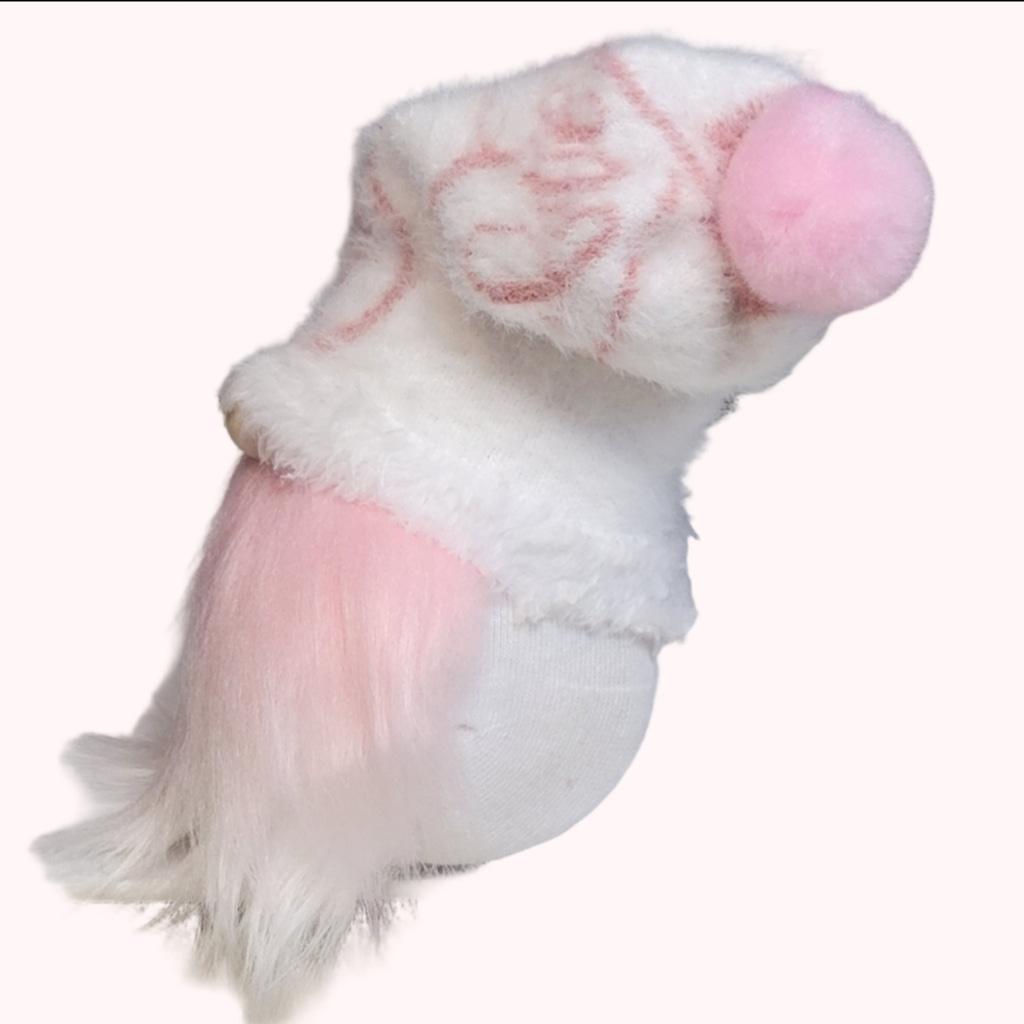 Meet Sugarpetal Twinkletoes, the sweet-natured gnome with a fondness for candy hearts and chocolates. Sugarpetal is handmade from a weighted sock, filled with rice and premium poly-fil, with a fuzzy white and pink hat with Love scrawled across it in pink lettering, and a pink pom pom on top. He has a flowing pink and white beard and wooden nose. He stands approximately 5.5" tall and 8" to the tip of his hat. Sugarpetal will be a great addition to your Valentine's Day decor, tiered tray collection, or as a shelf sitter, not just for 1 day out of the year, but for any and every day.