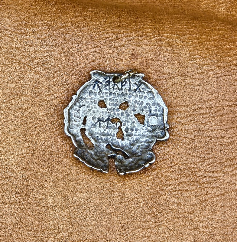 Description: Viking Age Borre style pendant found in England, dated to 9-10th century. Hand-cast bronze; includes jump ring. Pendant is slightly domed