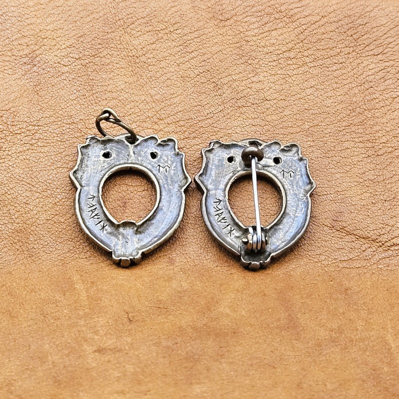Description: Viking Age double dragon pendant or brooch. Pendant includes a jump ring; brooch has a sturdy stainless steel pin