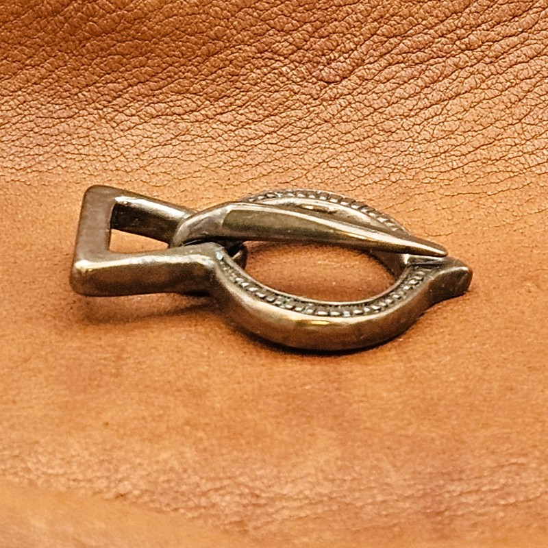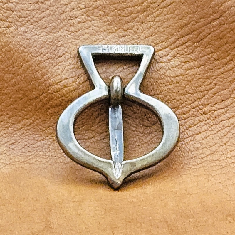 Dimensions: 4.5cm x 3.5cm x .3cm. Opening in the buckle is 2.5cm at the widest point and 1.3 cm on the opposite side