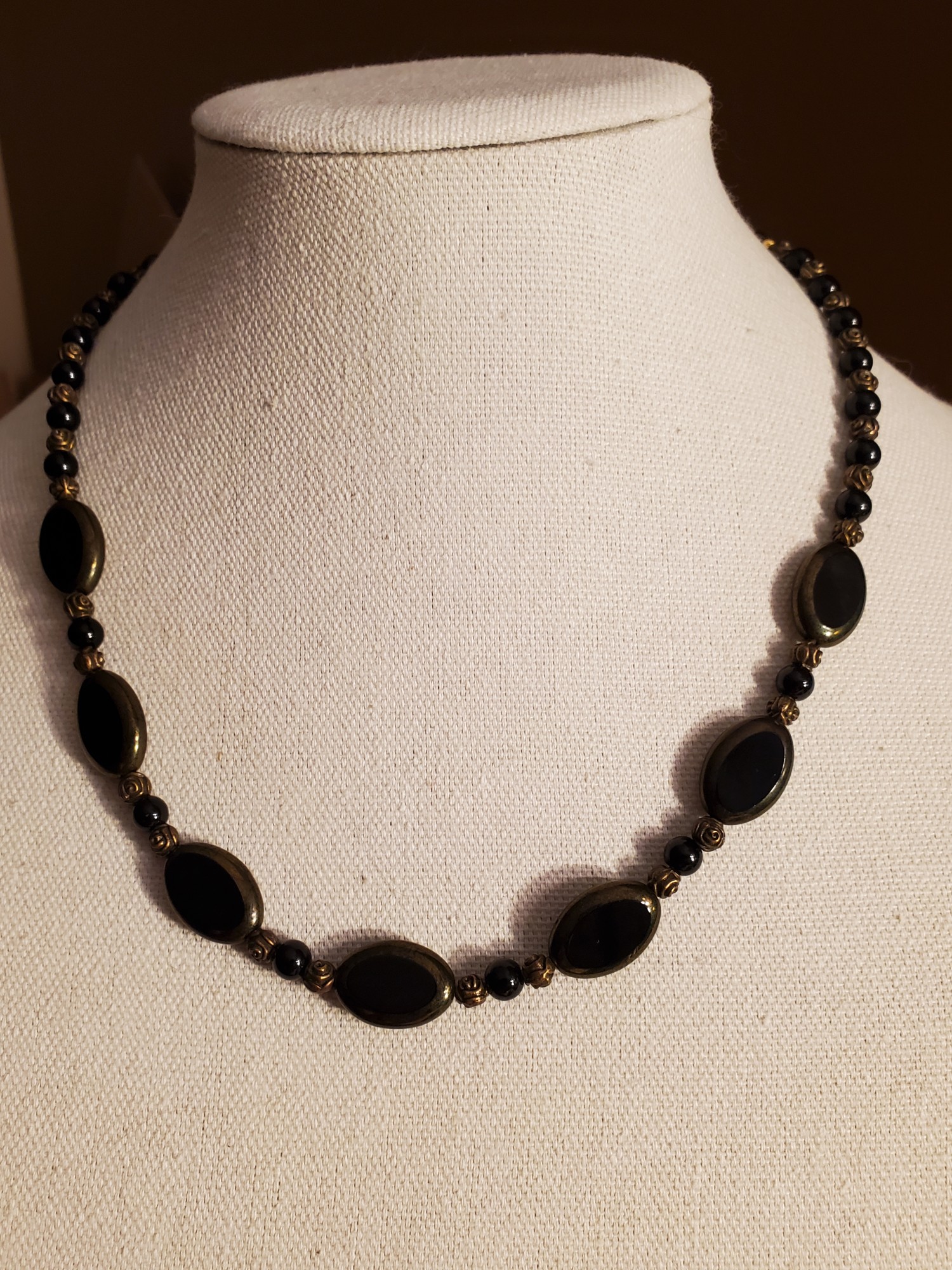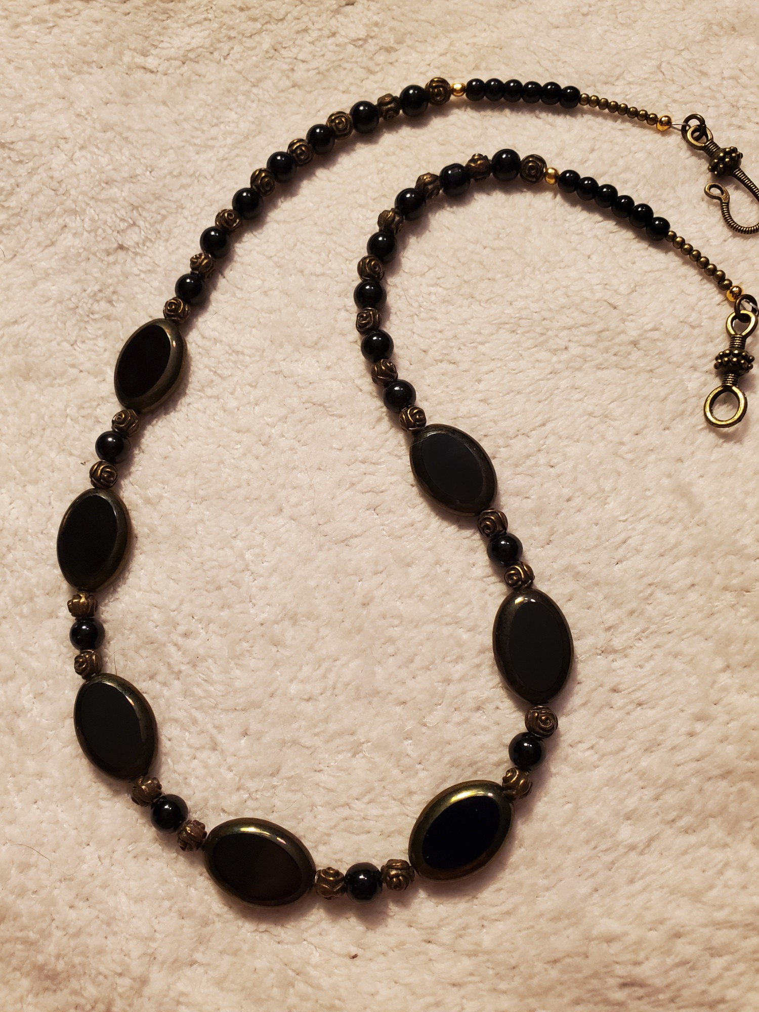 Antique German Gold plated Black Glass in Bronze, 20" long , One of a Kind