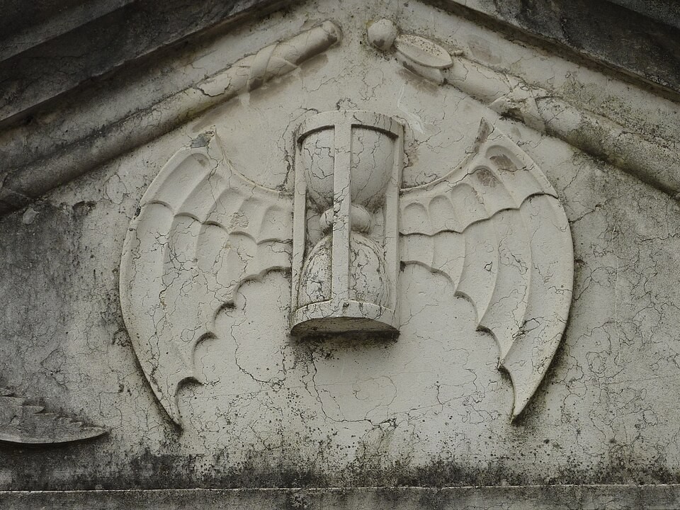 Time has wings, and the sands never cease their fall. A modern talisman inspired by the ancient art of remembering our mortality.
