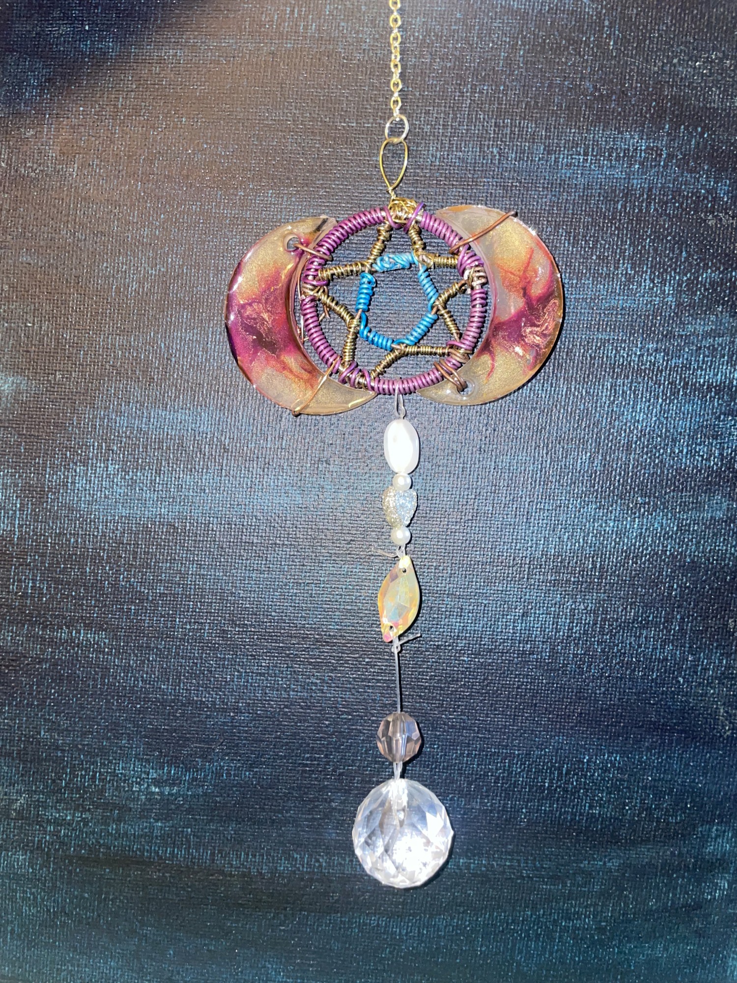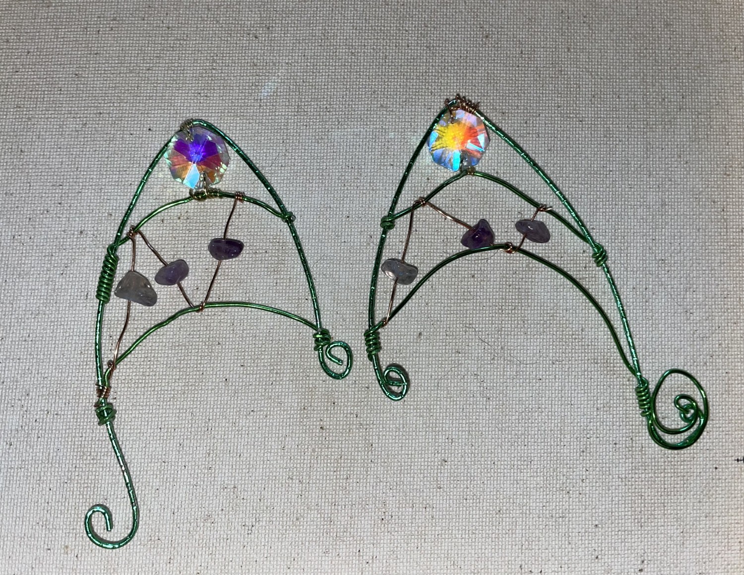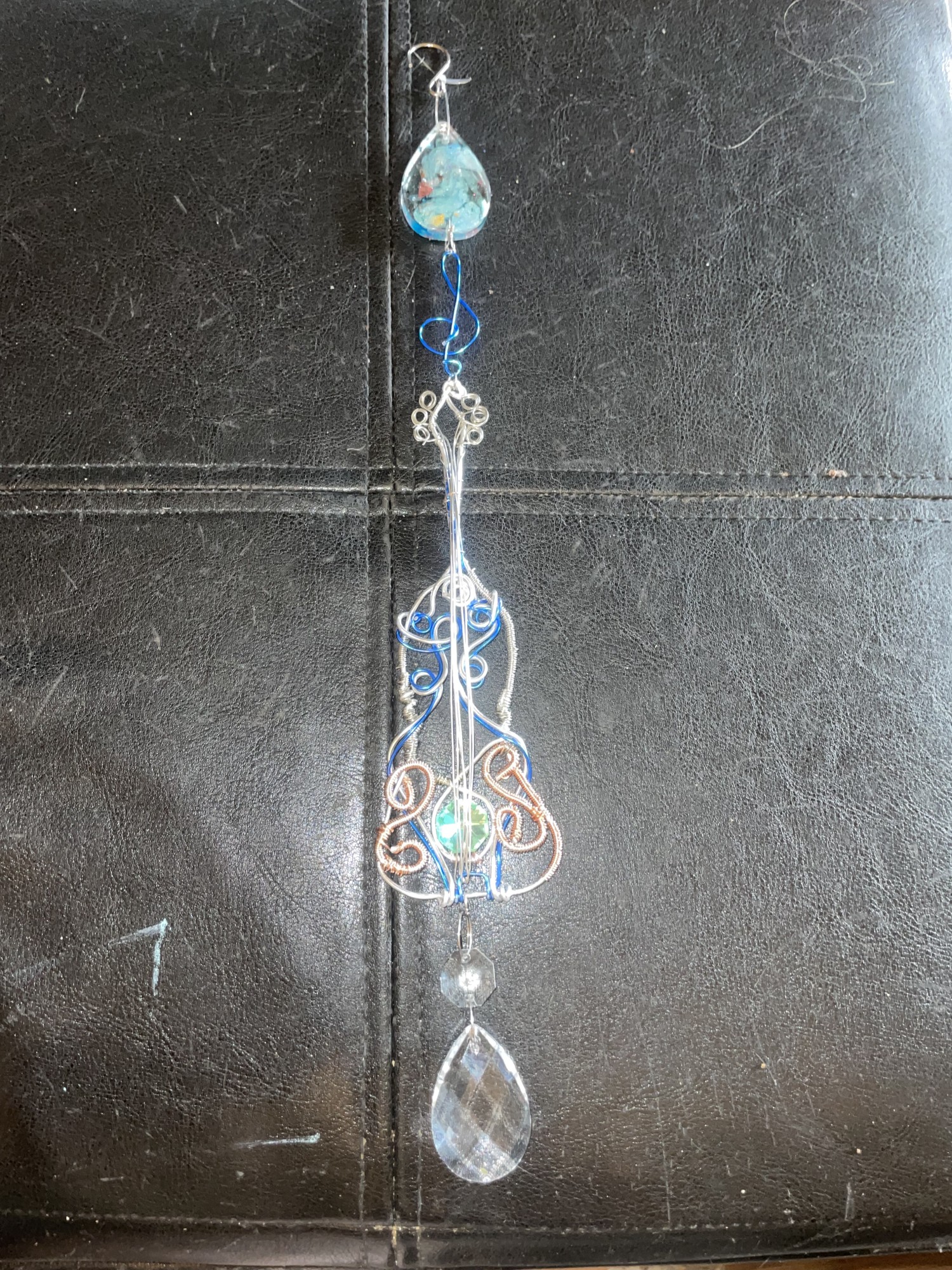 Custom wire wrappings as jewelry, keychains, Sun catchers or wall hangings.