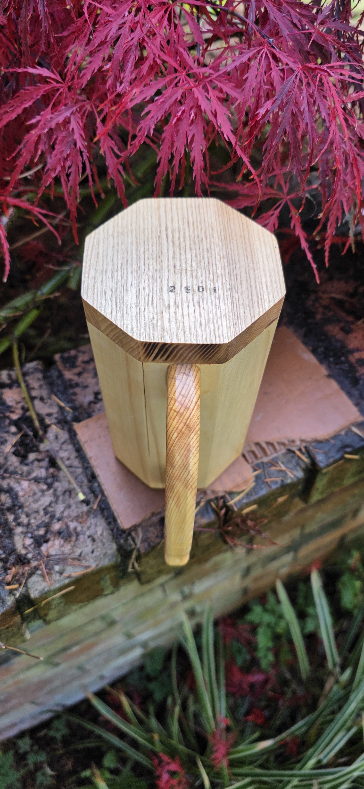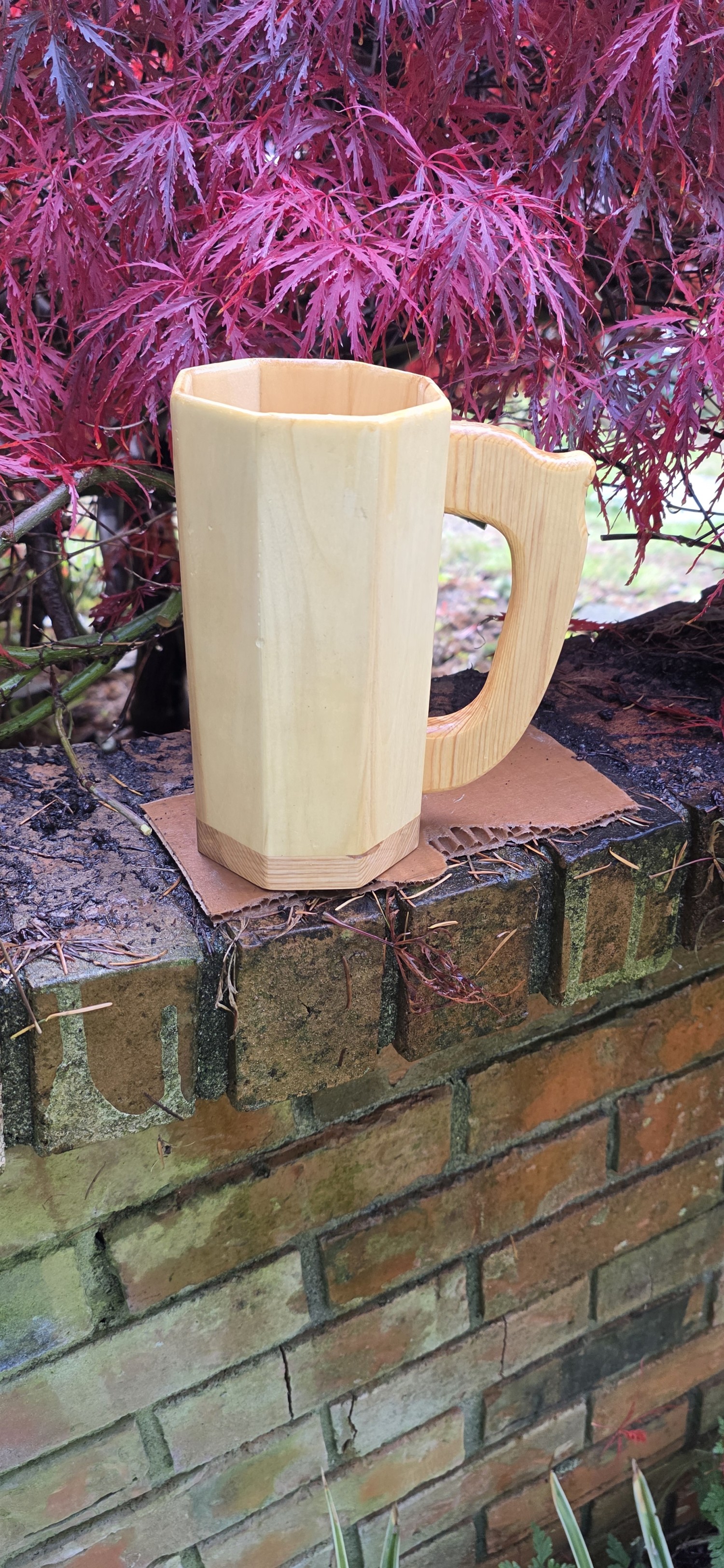 30oz tankard made of cedar, pine and oak. Good for your cold as well as hot beverages. Hand wash, good for beverages up to 140 degrees