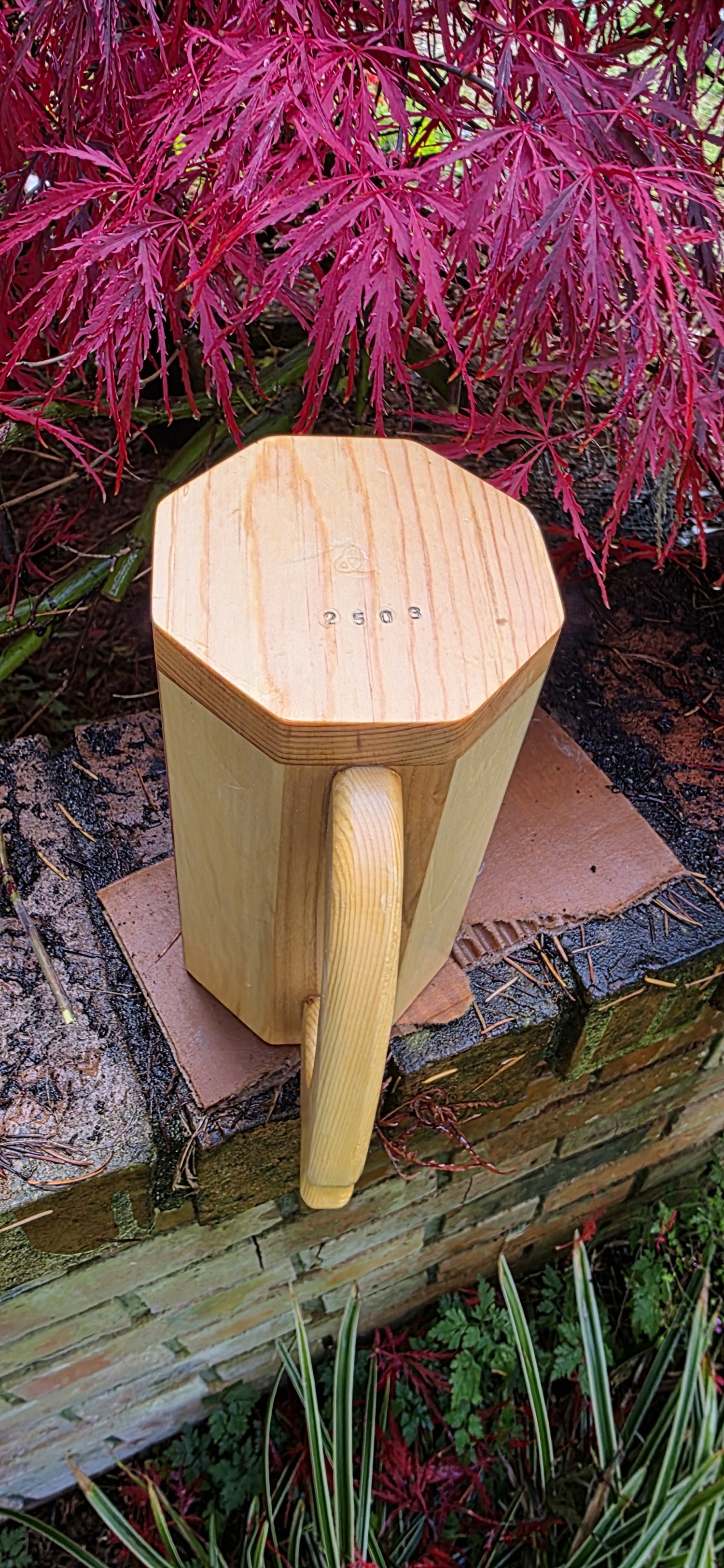 30oz tankard made of Cedar, Ash and Pine. Good for your cold as well as hot beverages.