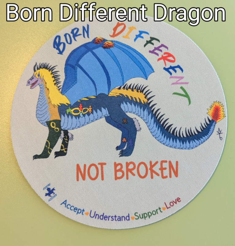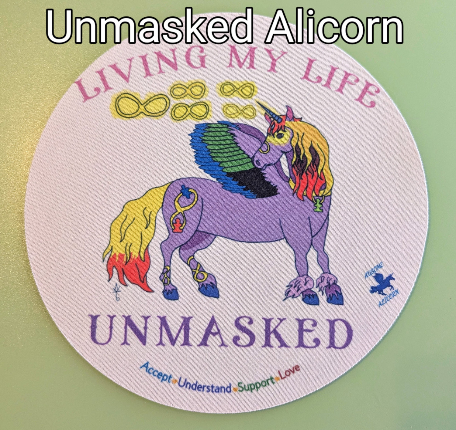 Round neoprene Mousepads showing our exclusive Autism Acceptance designs featuring original art by Ausome Alicorn! There are several designs available, so be sure to check them out, as well as other non-Autism Acceptance designs available in our shop. Mousepads are standard sized. The round mousepads are approximately 8" in diameter.
