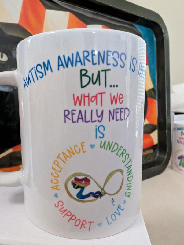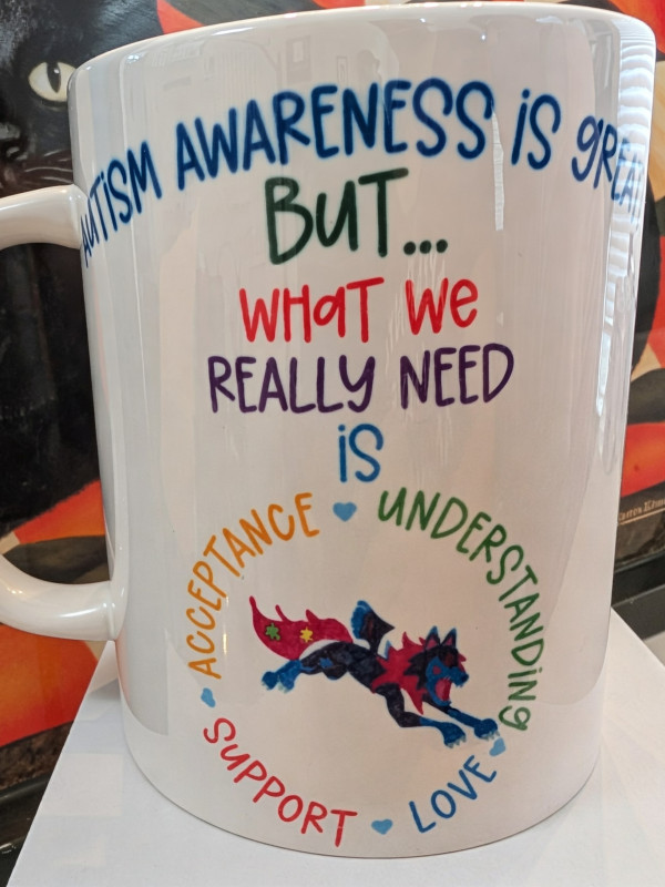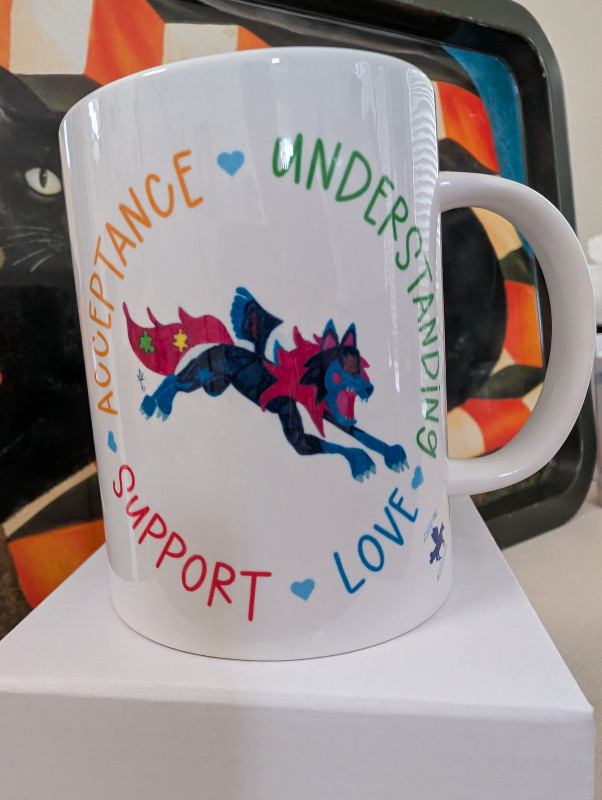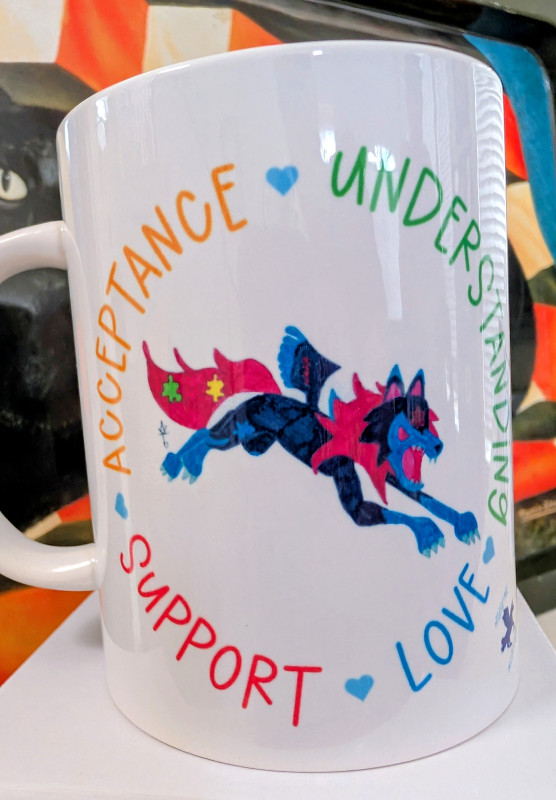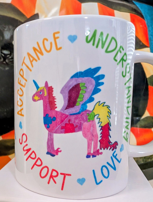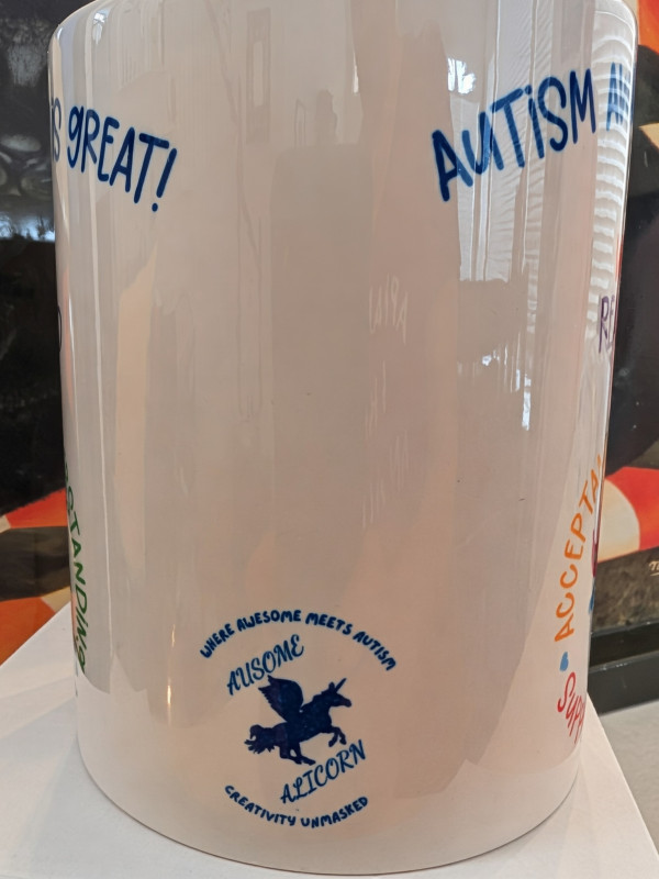 These white 15-ounce ceramic coffee mugs showcase original Ausome Alicorn artwork and Autism Awareness and Acceptance designs on both sides. There are multiple designs available, so be sure to browse all our options. Because each mug is made to order, the photos serve as examples and may not exactly match the mug you receive.