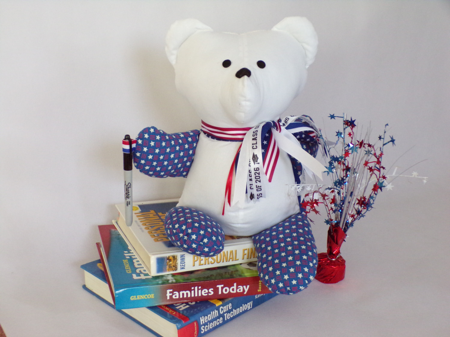 historical year with the Patriotic Autograph Bear. Bear is 18 inches long, has