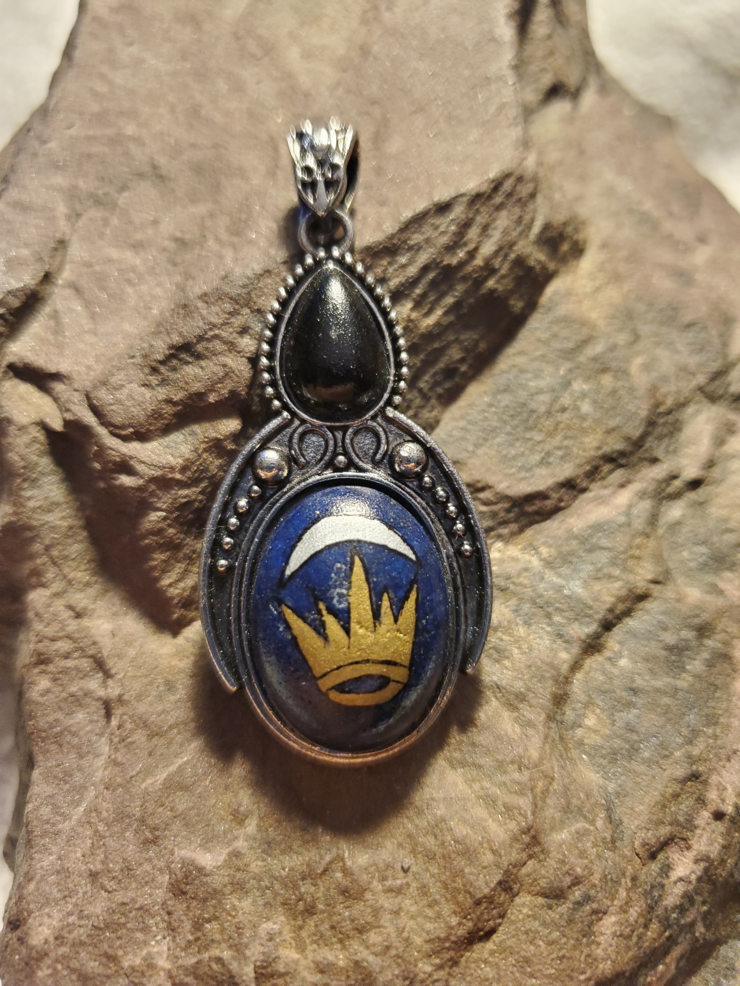 #ATSGalleries, #AlextheScribe, #DrifasLeap, #SilverCrescent, #LapisLazuli, #Pendant, #handmade, #GoldLeaf