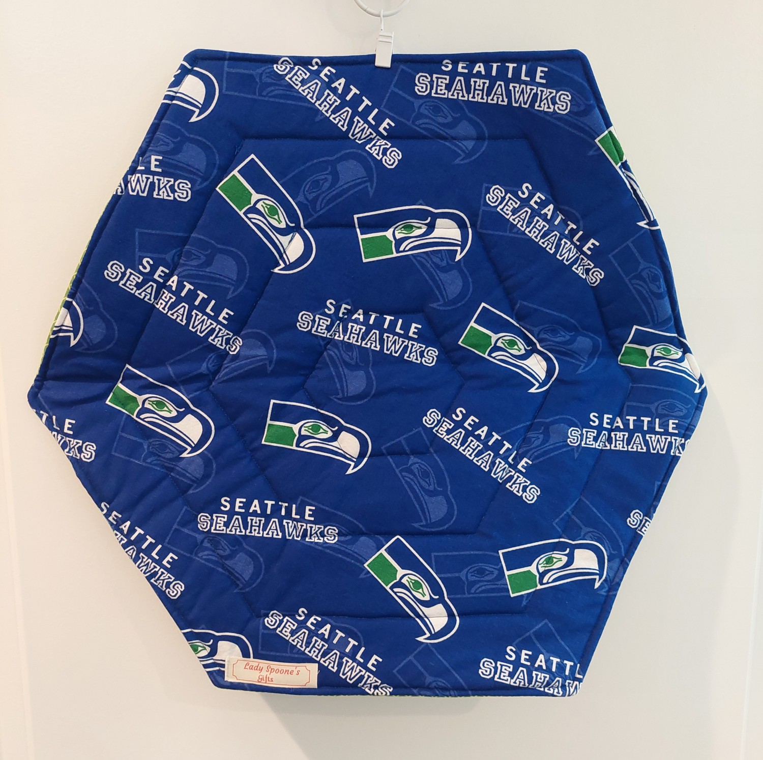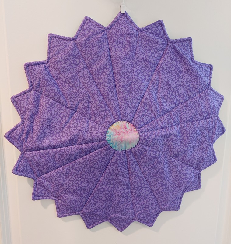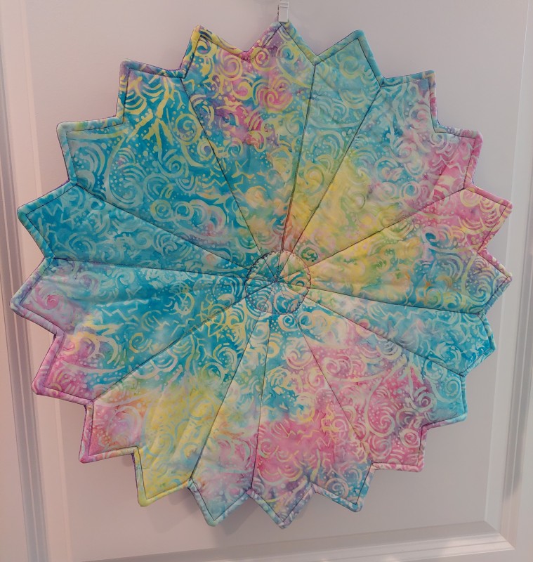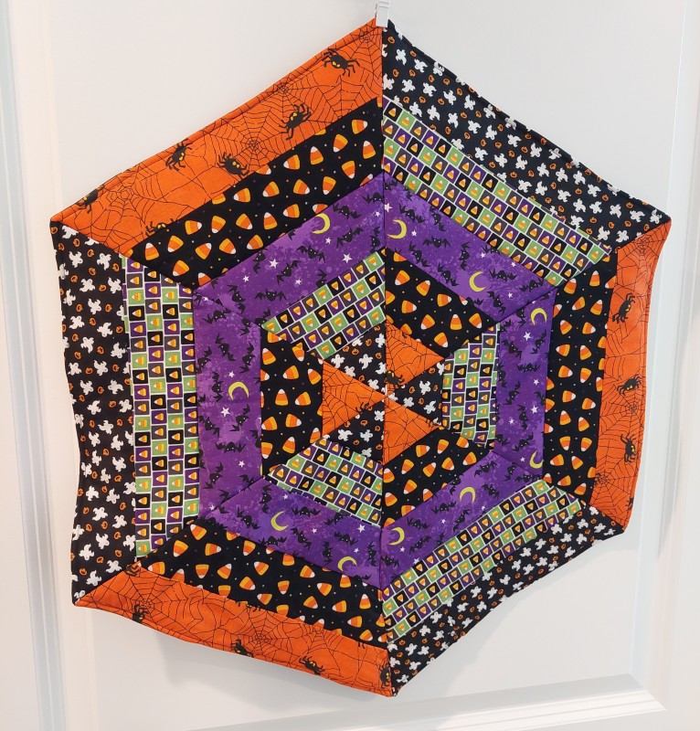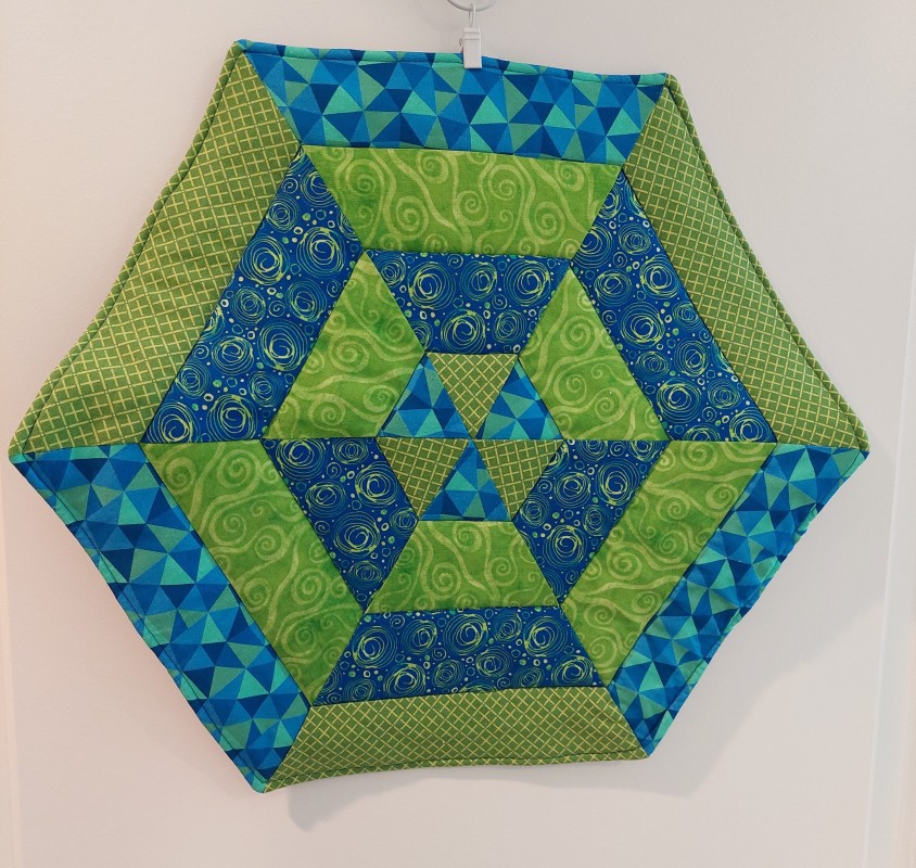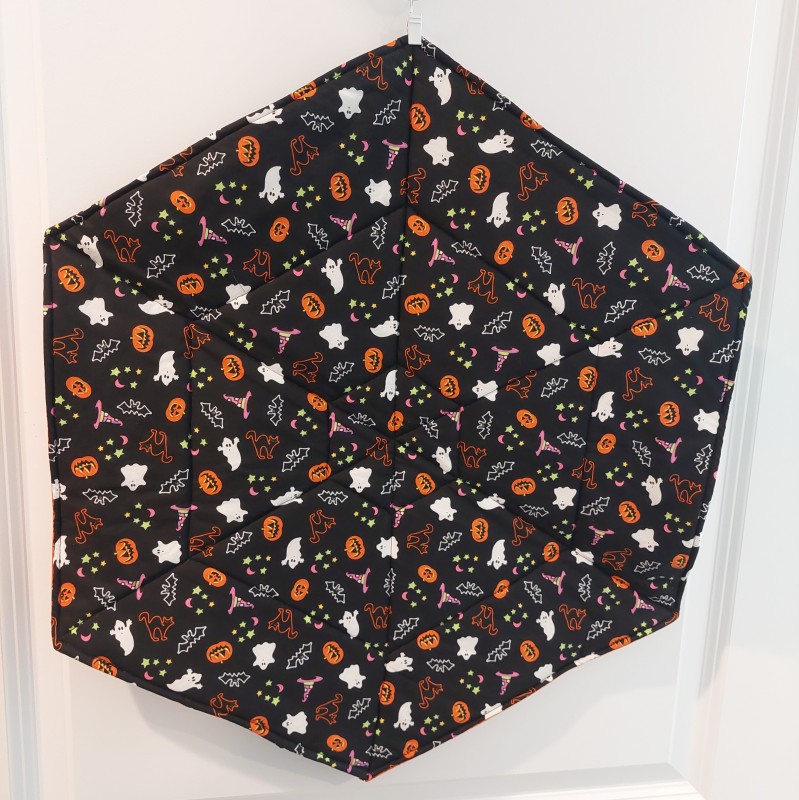 This lovely table topper is made in a circular or hexagon shape, making it perfect for a square or round table. Top and bottom are made from 100% cotton fabric, with a layer of cotton batting and a layer of Insul-bright. This allows the table topper to be heat resistant.